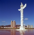 在广场中心有全国最大的汉白玉华表,高19.97米,直径1.997米。华表底座附有八条龙,柱身雕着一条龙,九条龙寓意中国九州。华表顶端坐着高2.3米的金光闪闪的望天吼。在华表周边还设有5盏高12.34米的大型宫灯,由汉白玉柱托起,光华灿烂,与华表交相辉映。广场中心仿效北京天坛圜丘的设计,由999块四川红大理石铺成,大理石上刻着天干地支、24节气和12生肖。广场内圆直径199.9米,外圆直径239.9米。