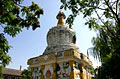 ¡¡¡¡±±Ëþ£¬ÊÇËÄËþÖб£´æ×îΪÍêÕûµÄÒ»×ù£¬Î»ÓÚ·¨ÂÖË´óµî¶«±±½Ç£¬´ÓÔ¶´¦¿´£¬ËþÉíÏó¸ö´ó¶ÇԲƿ£¬ÓÖÏó¸ö°üºù«£¬½ð¶¥ÏòÈÕÉÁÉÁ·Å¹â£»¶øËþɲ½Ú½ÚÉýÆðµÄÊ®ÈýÏàÂÖ£¬»¹¹Ò×ÅÍ­ÖÆÁåîõµÄ½ðÉ«»ª¸Ç¡£±±ËþµÄËþ»ù̳Ëıڸ÷µñÓÐÐÛʨһ¶ÔºÍ»ðÑæ±¦Å裬ËþÉíΪ¸²²§Ê½£¬ÕýÄÏ·ðíèÄÚÉè·ÙÎÄÉñÅÆ£»ËþɲÒÔÇàÍ­ÖýÔ죬ËÄÖÜÐüÓÐ12Ö§·ïîìÍ­ÁåÓ­·ç×÷Ï죬ÆäÉÏΪÈÕ¡¢ÔºͻðÑæÖ鱦¡£Õû×ù·ðËþÍ¿³É°×É«£¬ÒÔÏÔʾ·ðµÄׯÑϺÍÉñÊ¥¡£